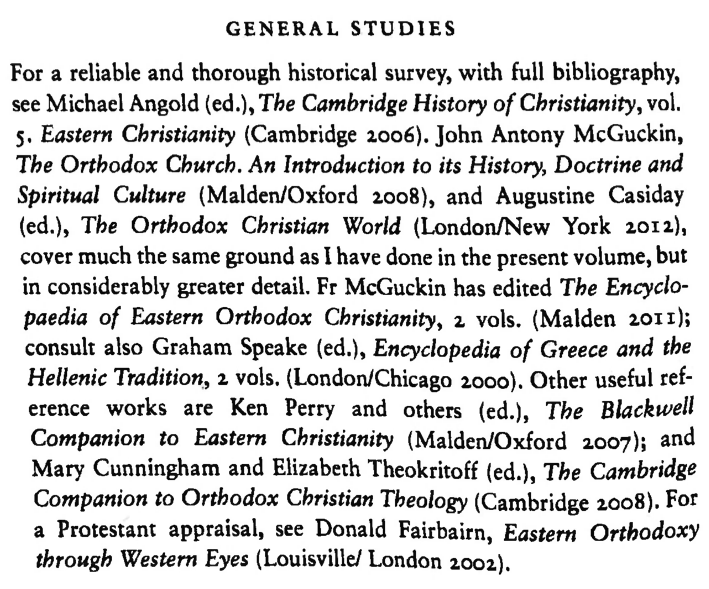 John Antony McGuckin, The Orthodox Church. An Introduction to its History, Doctrine and Spiritual Culture (Malden/Oxford 2008)