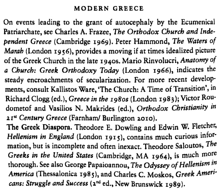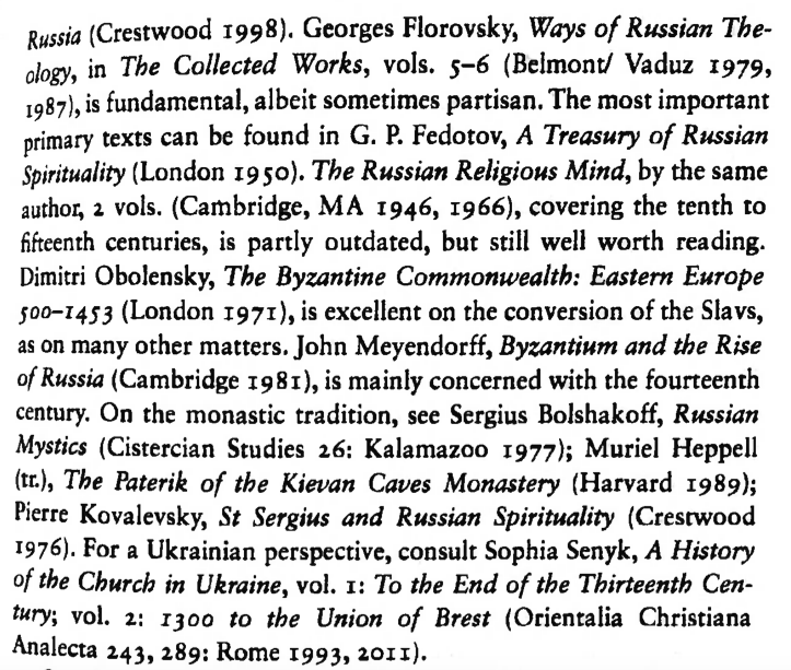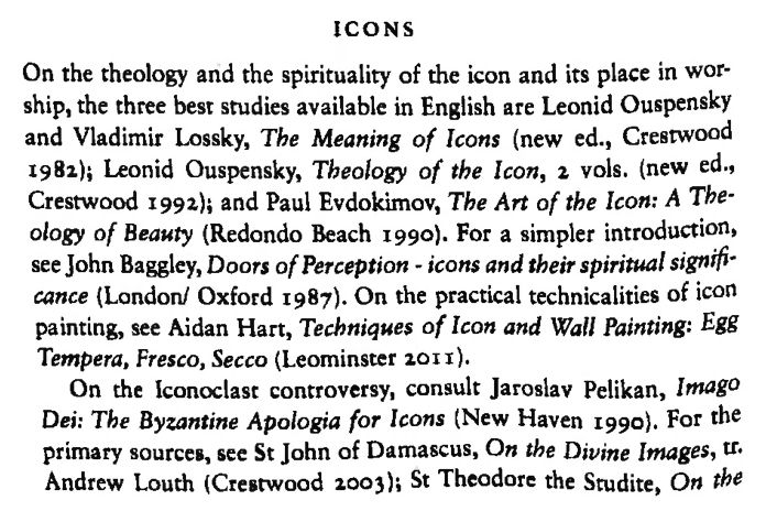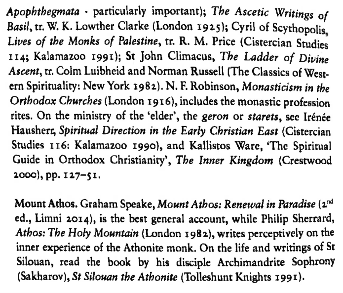 也许有读者问,那么其他方面呢?比如神学,礼仪,灵修等呢。维尔主教的这本书也在后面提供了一个进一步了解的书单,我认为对于国人而言十分有益,姑截图放置如下,以供读者参考。若读者要下载pdf的版本,请点击这里「标题为:Ware_2015_The_Orthodox_Church-FurtherReadings.pdf」。