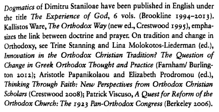 Dogmatics of Dimitru Staniloae have been published in English under the title The Experience o f G od, 6 vols. (Brookline 1994-1013). Kallistos Ware, The O rthodox Way (new ed., Crestwood 1995), emphasizes the link between doctrine and prayer. On tradition and change in Orthodoxy, see Trine Stanning and Lina Molokotos-Liederman (ed.), Innovation in the Orthodox Christian Tradition? The Question o f Change in Greek Orthodox Thought and Practice (Famham/ Burlington 2012); Aristotle Papanikolaou and Elizabeth Prodromou (ed.), Thinking Through Faith: N ew Perspectives from Orthodox Christian Scholars (Crestwood 2008); Patrick Viscuso, A Quest for Reform o f the Orthodox Church: The 1923 Pan-Orthodox Congress (Berkeley 2006).