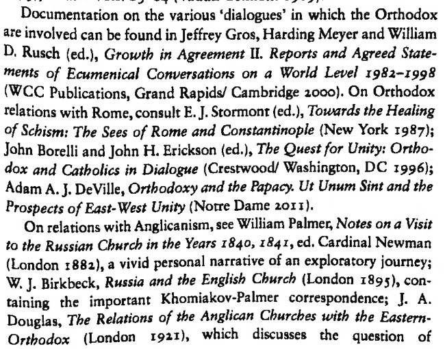 On relations with Anglicanism, see William Palmer, Notes on a Visit to the Russian Church in the Years 1840,1841, ed. Cardinal Newman (London 1882), a vivid personal narrative of an exploratory journey; W. J. Birkbeck, Russia and the English Church (London 1895), containing the important Khomiakov-Palmer correspondence; J. A. Douglas, The Relations of the Anglican Churches with the Eastern-Orthodox (London 19*1)« which discusses the question of