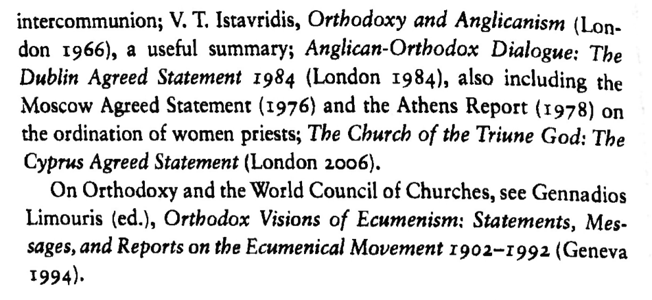 intercommunion; V. T. Istavridis, Orthodoxy and Anglicanism (London 1966), a useful summary; Anglican-Orthodox Dialogue: The Dublin Agreed Statement 1984 (London 1984), also including the Moscow Agreed Statement (1976) and the Athens Report (1978) on the ordination of women priests; The Church o f the Triune God: The Cyprus Agreed Statement (London zoo6).
